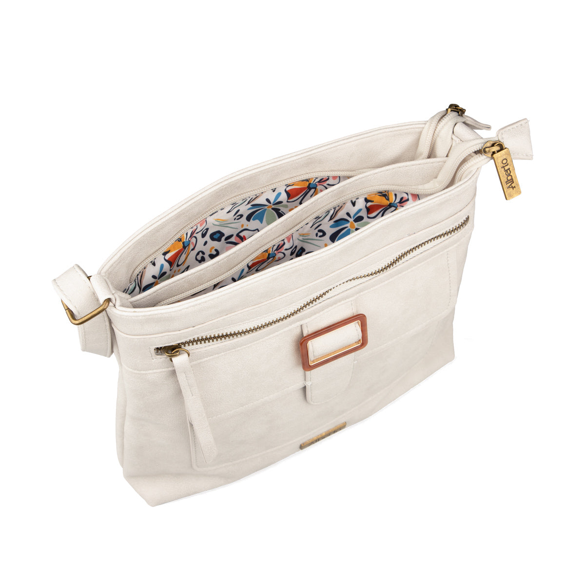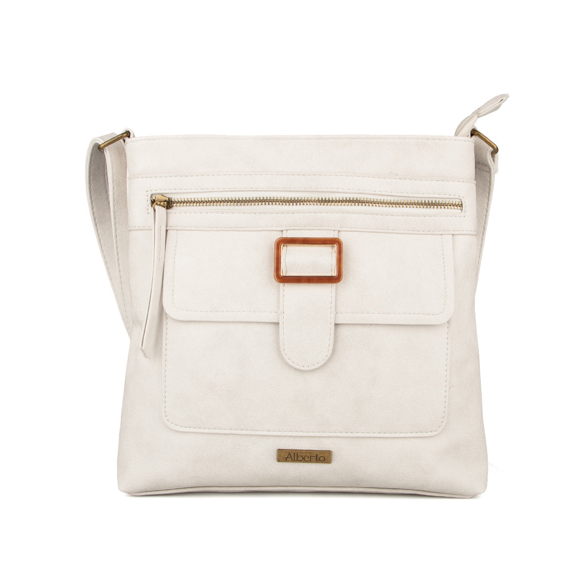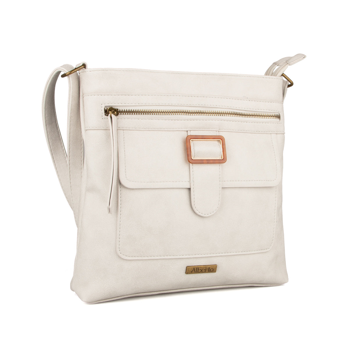 Sac à main Alberto pour femmes en cuir synthétique, alliant style et fonctionnalité. Son intérieur en tissu imprimé ajoute une touche élégante, tandis que ses deux compartiments avec fermeture éclair permettent un rangement organisé et un accès rapide aux essentiels. La bandoulière ajustable assure un port confortable au quotidien.