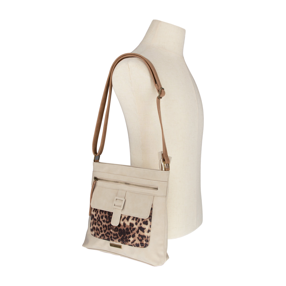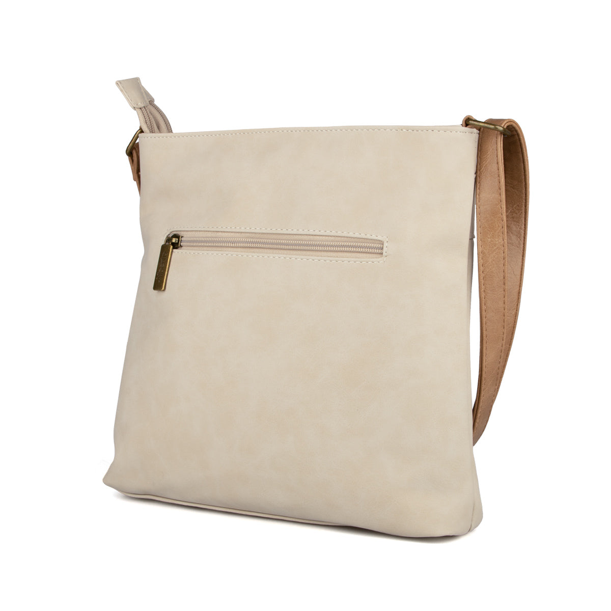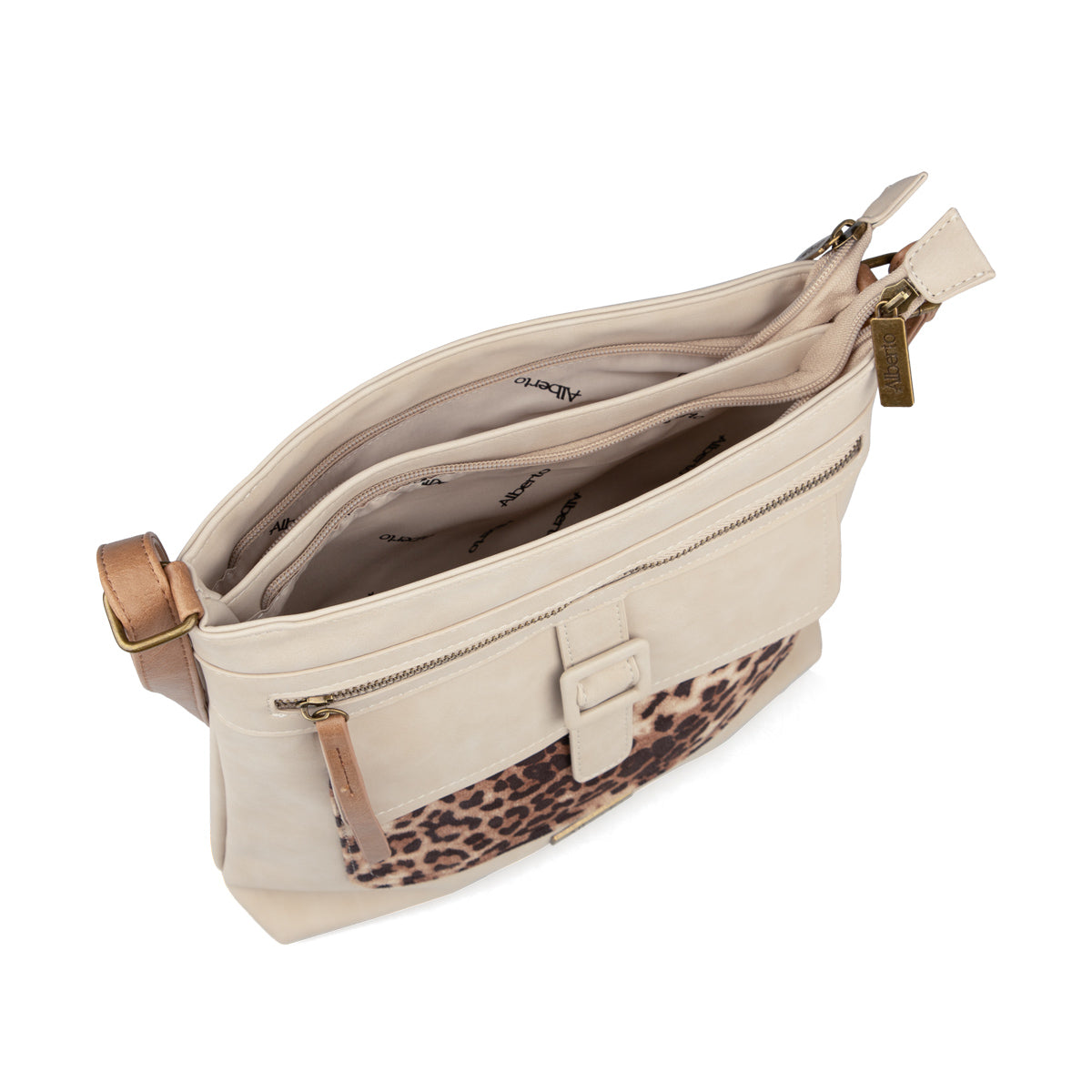 Sac à main Alberto pour femmes en cuir synthétique, combinant élégance et praticité. L’intérieur en tissu imprimé apporte une touche féminine, tandis que les deux compartiments avec fermeture éclair permettent un rangement organisé et un accès rapide aux essentiels. La bandoulière ajustable offre un port confortable et polyvalent.